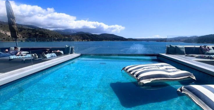 Onboard water activities include paddleboards, kayaks, jet skis, SeaBobs, and a marina style swim platform that allows guests to swim directly off the yacht when conditions permit.